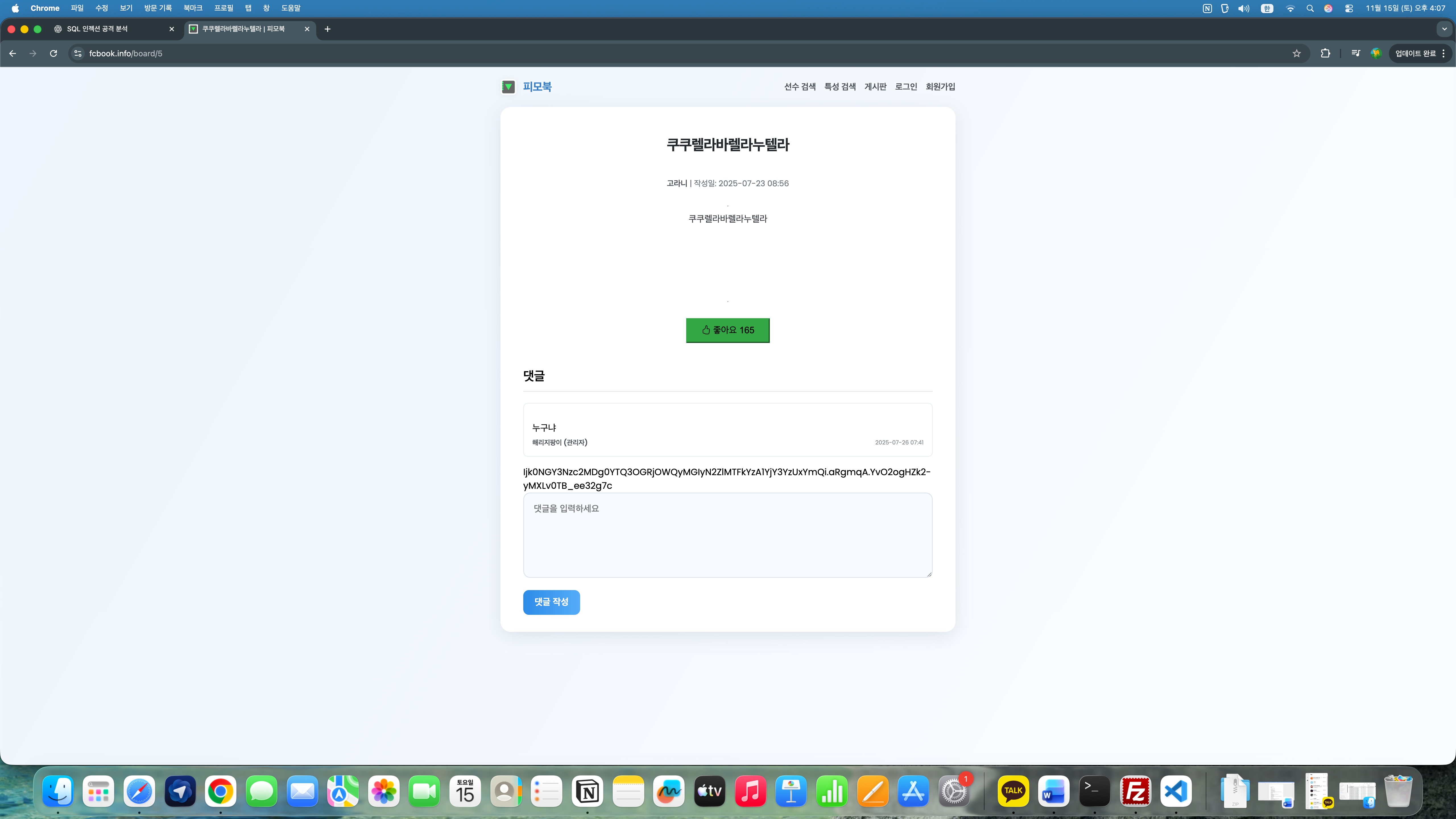 게시판 시인성이 떨어지네요 | 비밀 | 25-11-15 | 0 |